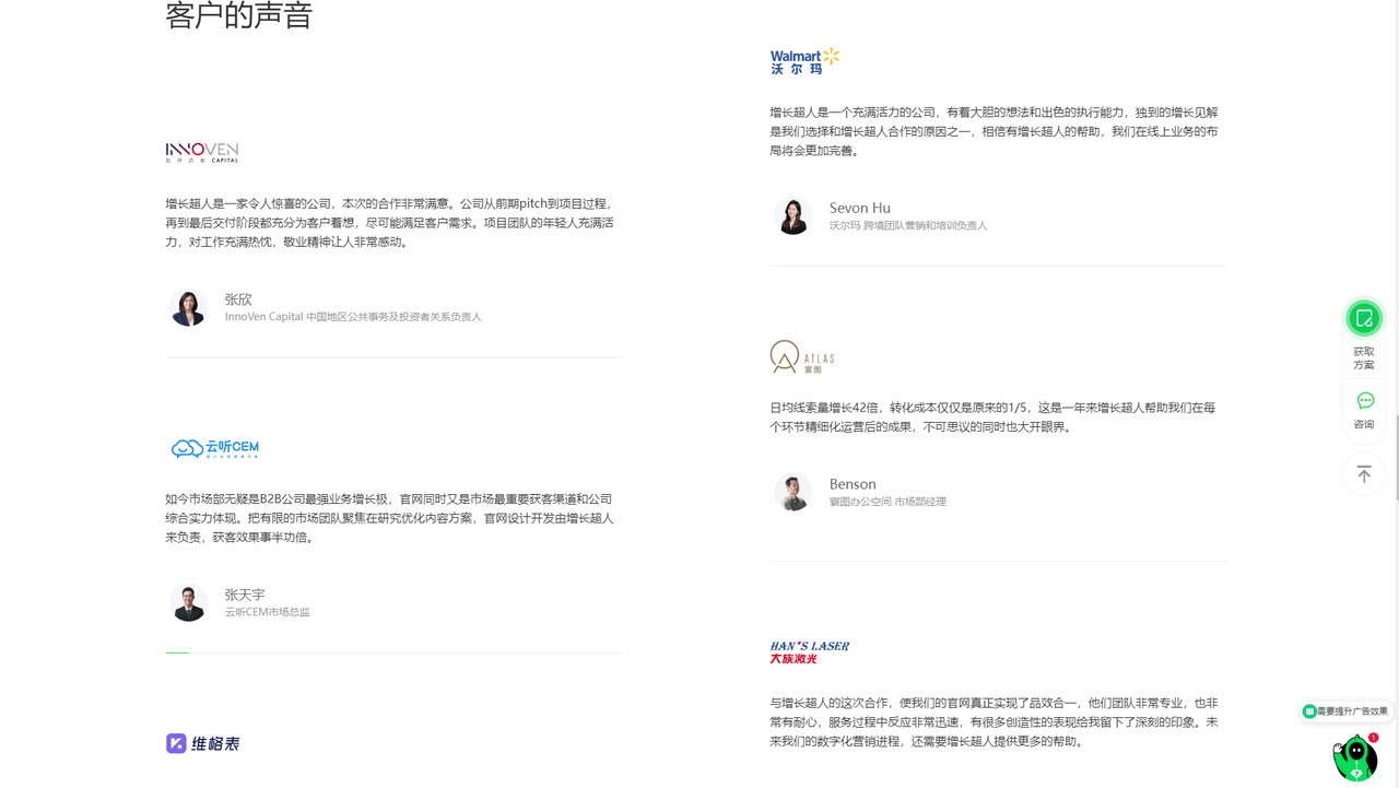 增进超人GrowthMan是一家专业的网站计划公司,他们具有完善的增进团队,团队成员由浩瀚卓越的营销专家、计划师易倍EMC网页版登录、产物司理和工程师构成,帮帮如沃尔玛、百度、富士康、华润、英飞凌、万科达成“访客转化客户”的对象。